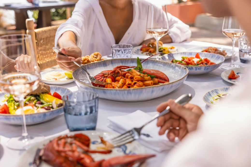 At Vilebrequin La Plage Restaurant, Mediterranean flavors and effortless sophistication take center stage.